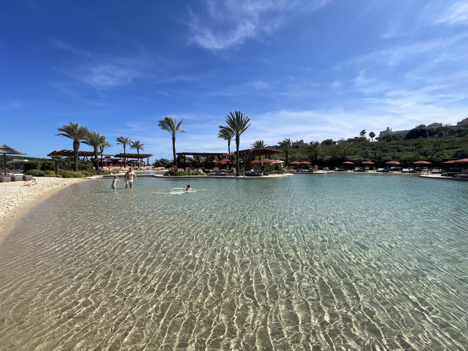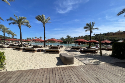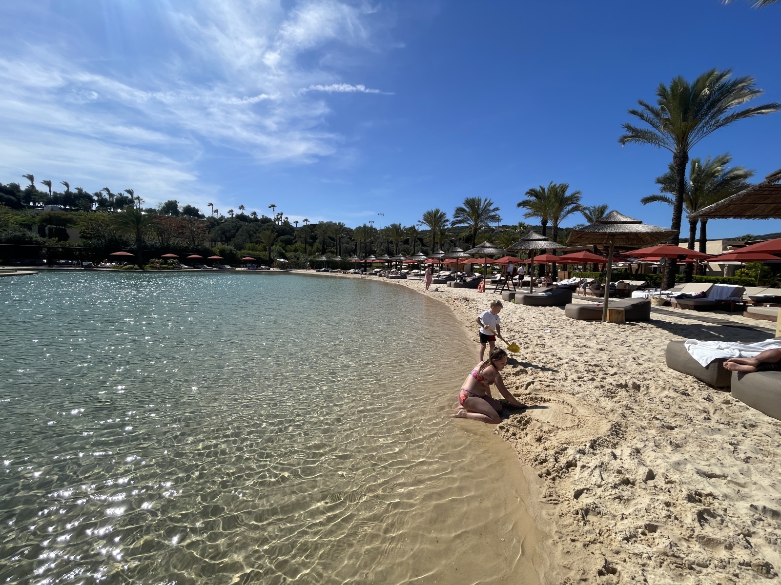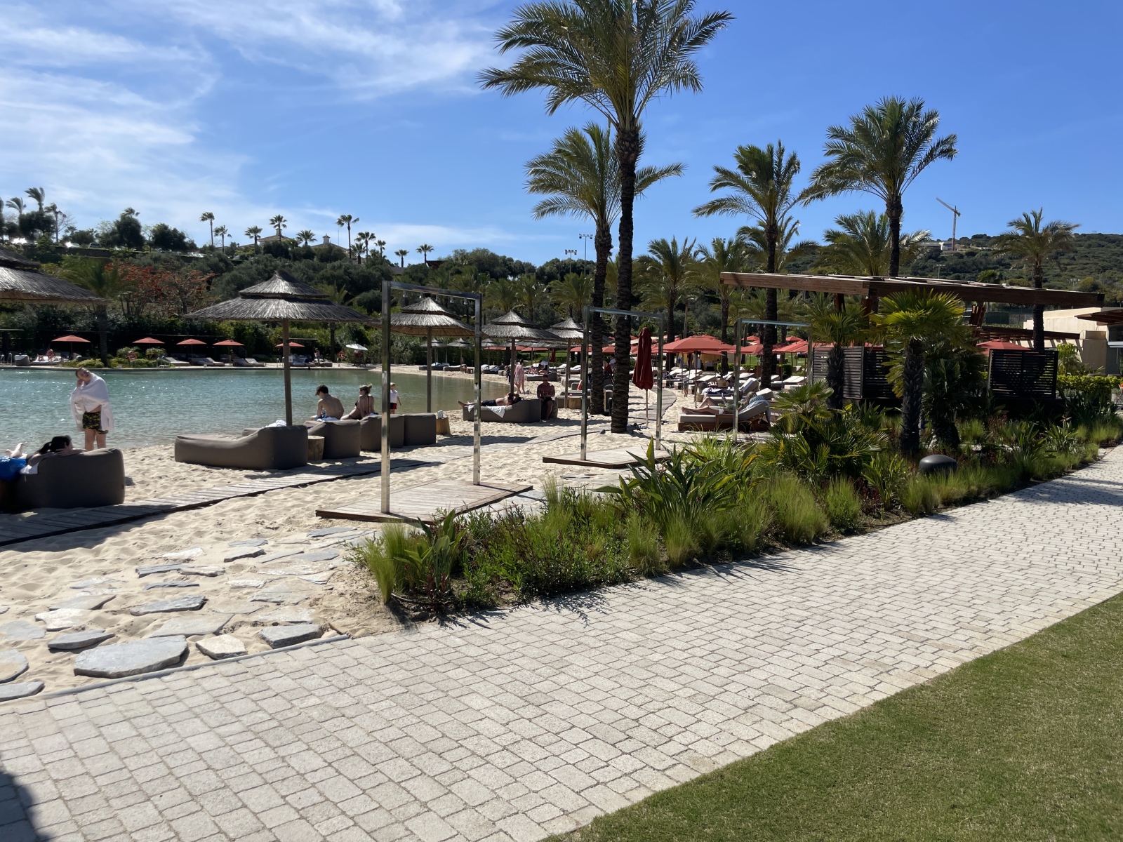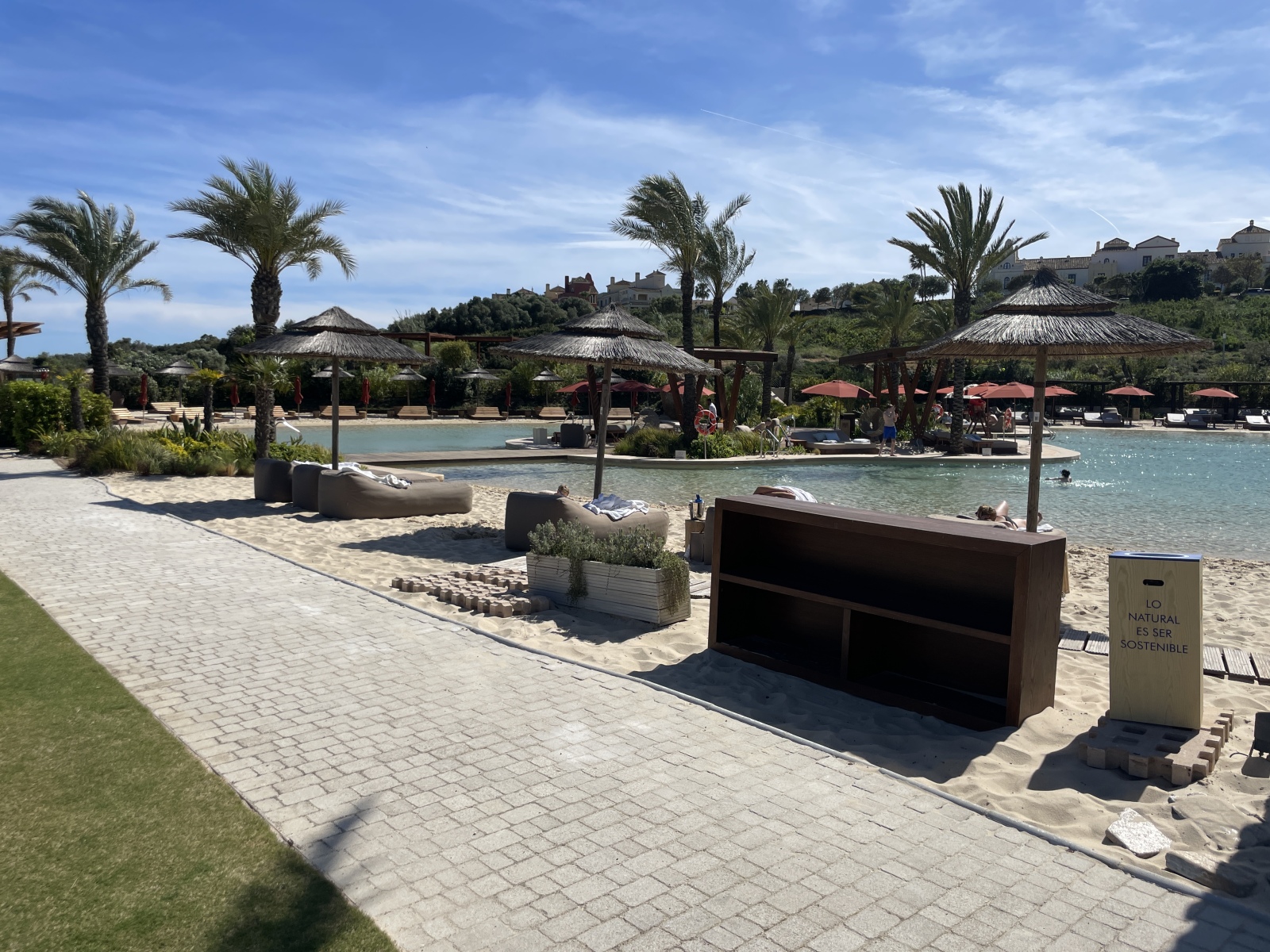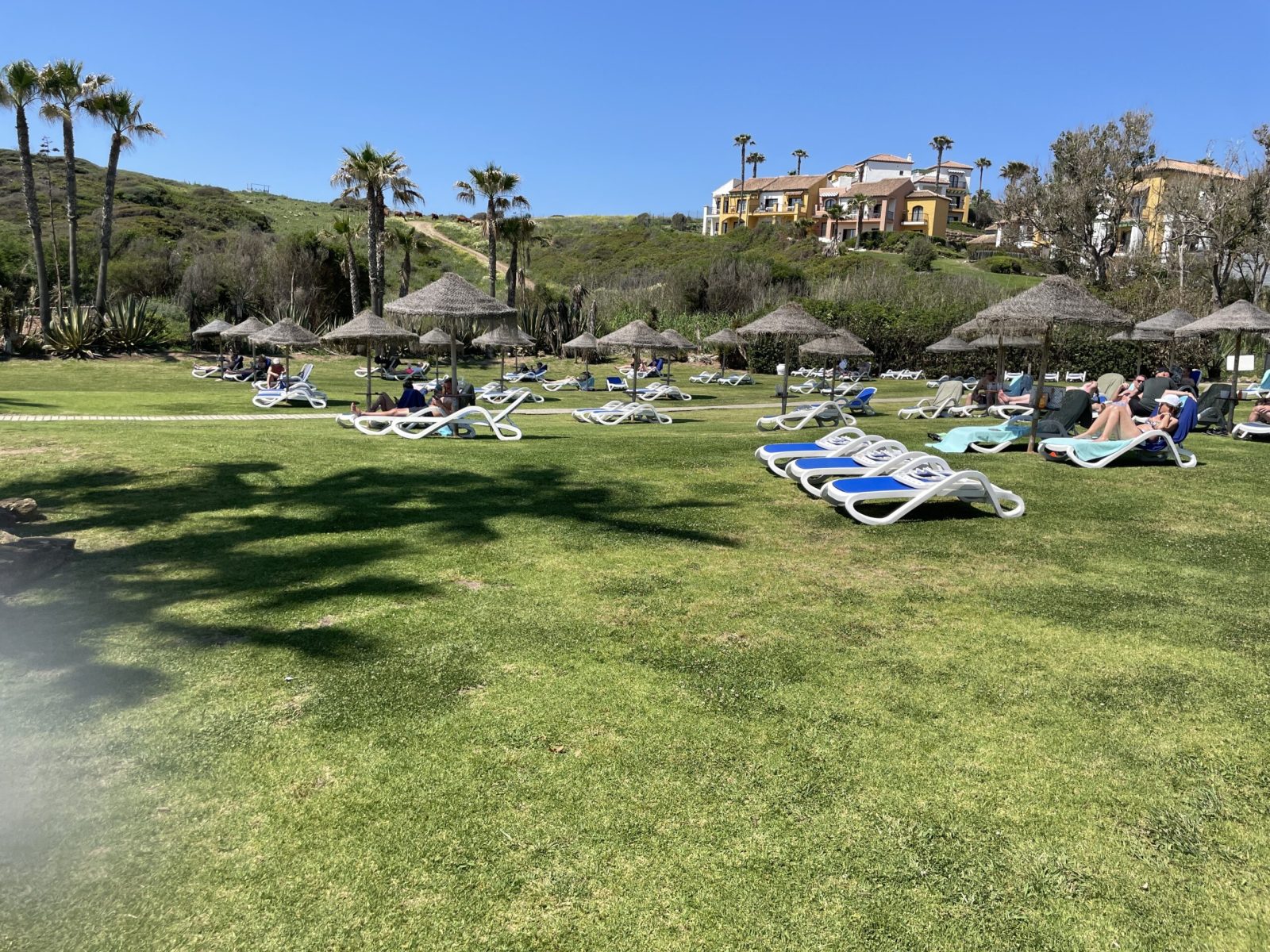 Dlouhá a široká písčitá pláž přilehlá k rezortu nabízí kromě pohodového odpočinku a koupání i nádherné výhledy na skálu Gibraltar. Na pláži je možné si pronajmout lehátka za poplatek, popřípadě přinést vlastní. U restaurací je možné sedět bez poplatku v případě, že v ní také konzumujete jídlo/pití.