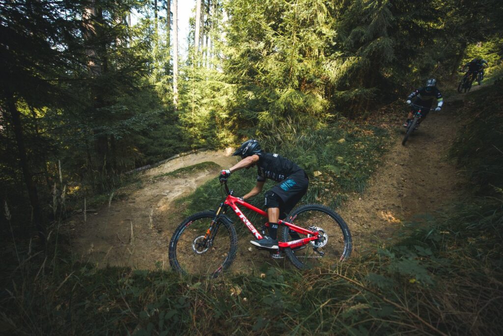 Červený trail – 2,1 km dlouhý freeride trail s klopenými zatáčkami, dropy a kořenovými pasážemi.