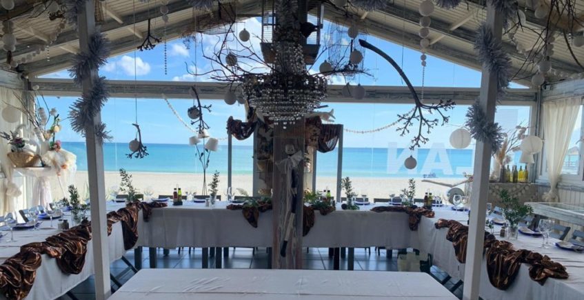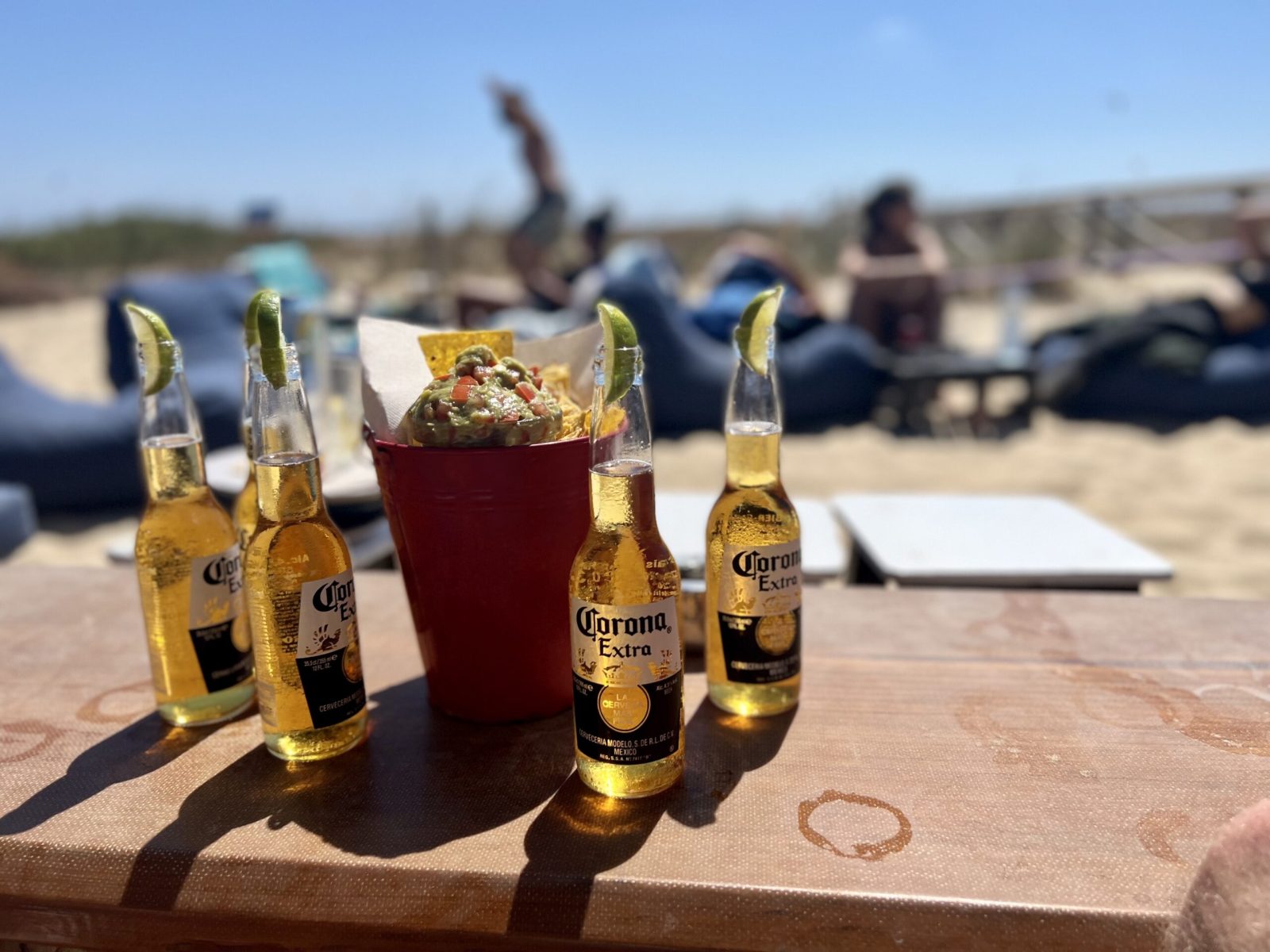 Bar na pláži 10 min. pěšky od apartmánu Od apartmánu tunelem přes golfové hřiště k moři, pak po pláži vlevo.